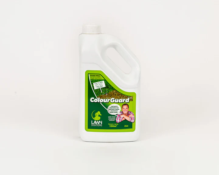 ColourGuard has been developed to give you the best lawn in the street on drought, frost affected or dormant grass. It instantly restores the natural colour of your grass while at the same time increases your grass health. Covers up to 150m2 when used as per instructions on the label. Is your lawn looking a little worse for wear? We have the perfect solution… ColourGuard Lawn Tint. The solution to having a drought tolerant, lush green lawn for the entire year. WHOLESALE ENQUIRIES WELCOME Here are some suggestions as to where you could use ColourGuard: Any drought tolerant turf in a residential back or front yard, school ovals, football fields, naturestrips, FOR SALE properties, investment properties, display homes, cricket grounds, the choices really are endless… What is ColourGuard ‘lawn paint’? ColourGuard is a natural organic grass treatment product that strengthens and protects grass under extreme conditions and instantly restores the colour. ColourGuard is the best option to re-introduce a green pigment back into the natural grass blades. This has been achieved through years of research, being proactive is key to healthy long living green lawn. How long before we can walk on the lawn? Once ColourGuard has dried on the grass leaf in most cases within 2 hours provided there is full sunlight that day. What happens if it rains? Once the application has set into your lawn it will not wash ColourGuard away or cause any unwanted affect. Can I mow my lawn after ColourGuard application? Yes. Providing you don’t set the mower to low and scalp your lawn. ColourGuard is permanent and will disappear as the grass leaf grows. Mowing through winter is only to remove and clean up leaves and debris from your lawn. What are the benefits?