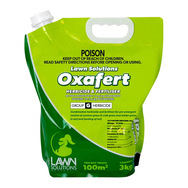 Launch a preventative strike on annual grasses and broad-leaf weeds with Lawn Solutions OxaFert Herbicide & Fertiliser. A pre-emergent herbicide for most warm-season grasses, OxaFert controls weed seedlings during germination
